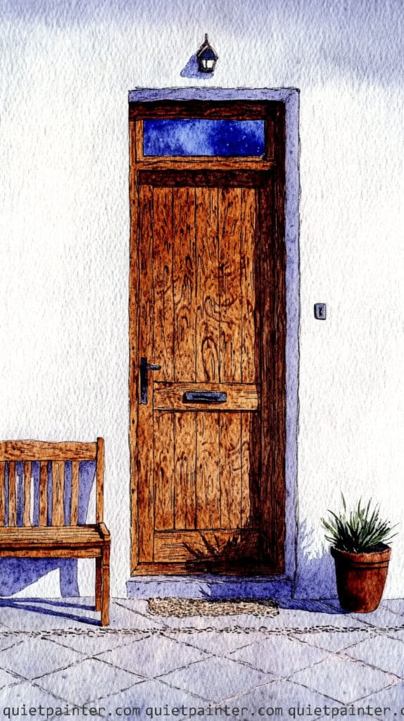 | Wooden Door & Bench | Raw Sienna, Burnt Umber, Sepia |