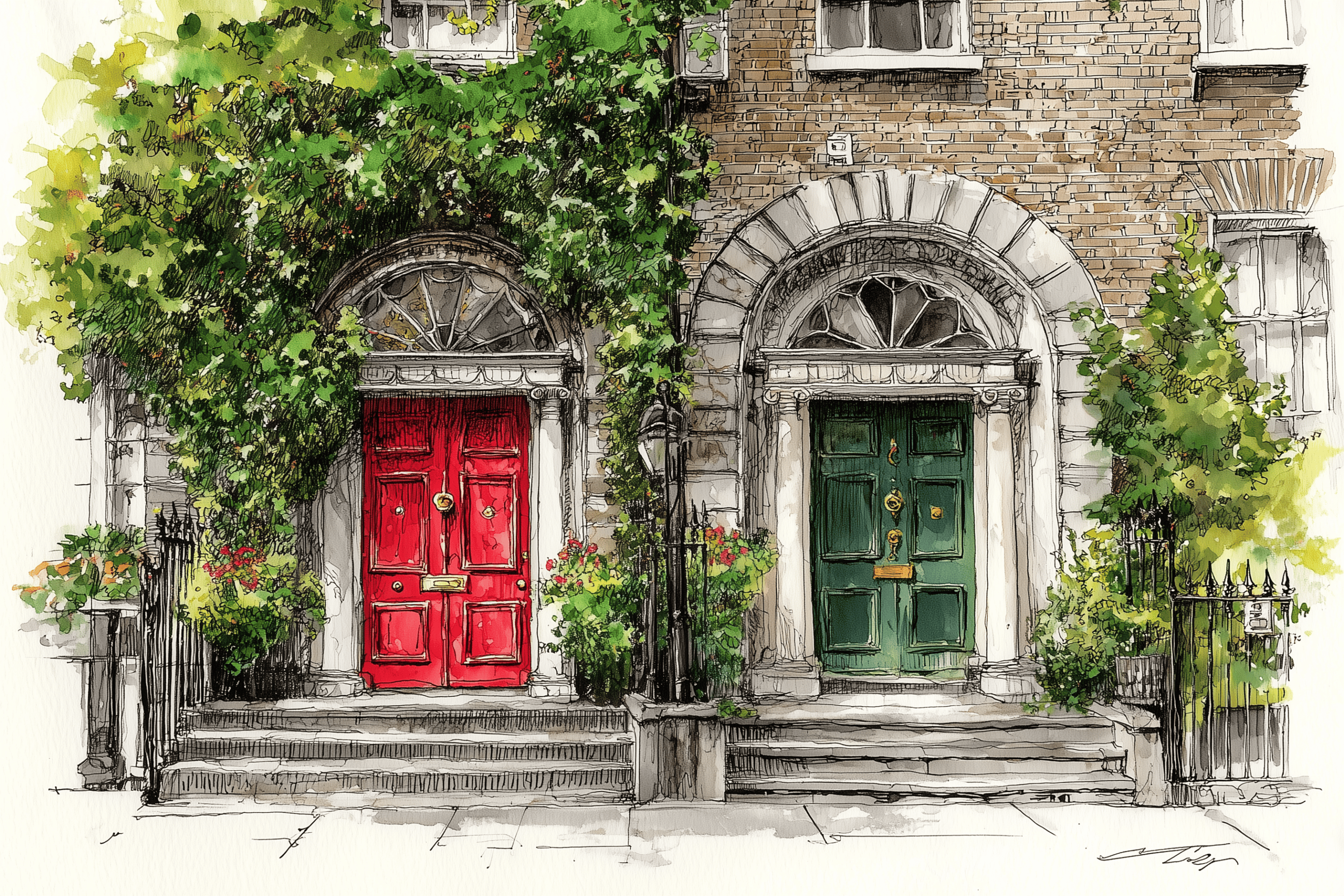 32 Door & Window Watercolor Ideas (Coloring Pages Available)